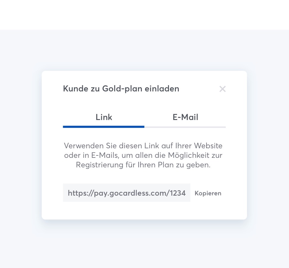 Um Zahlungen einziehen zu können, müssen Ihre Kunden eine Online-Lastschrifteinzugsermächtigung ausfüllen. Eine Einladung über GoCardless ist einfach – laden Sie Kunden per E-Mail oder über einen Link ein, den Sie auf Ihrer Website veröffentlichen oder Rechnungen beifügen.