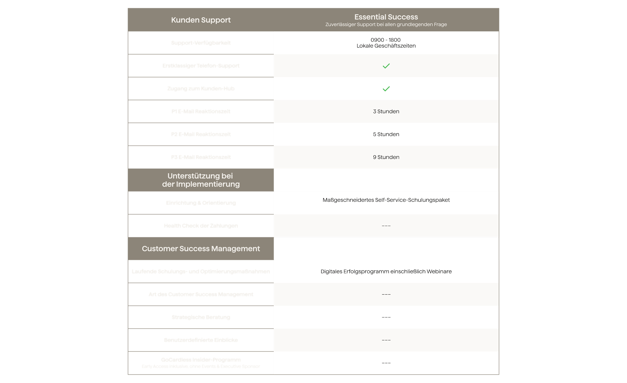 Wenn Sie mehr über erste Schritte mit Essential Success (Basis-Erfolg) erfahren möchten, melden Sie sich bitte bei unserem Team, und wir besprechen gern unsere Optionen mit Ihnen.