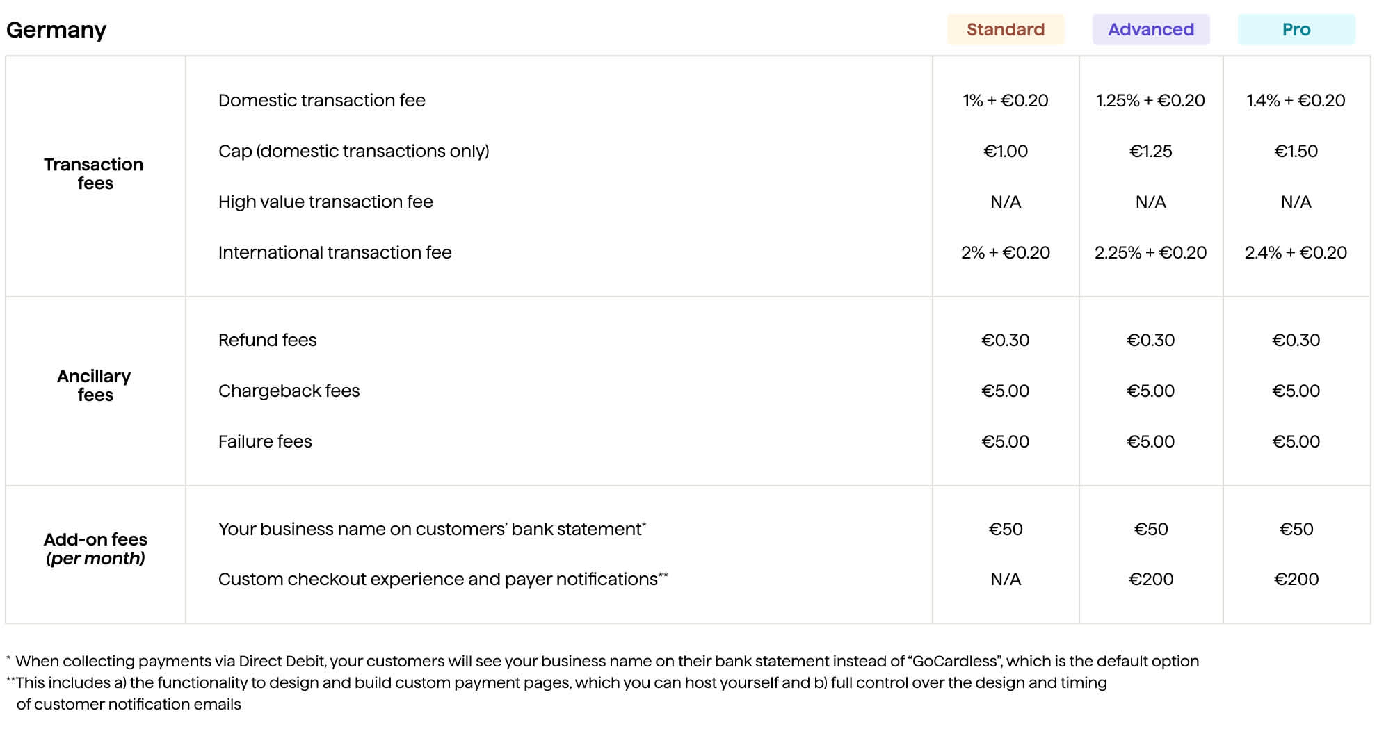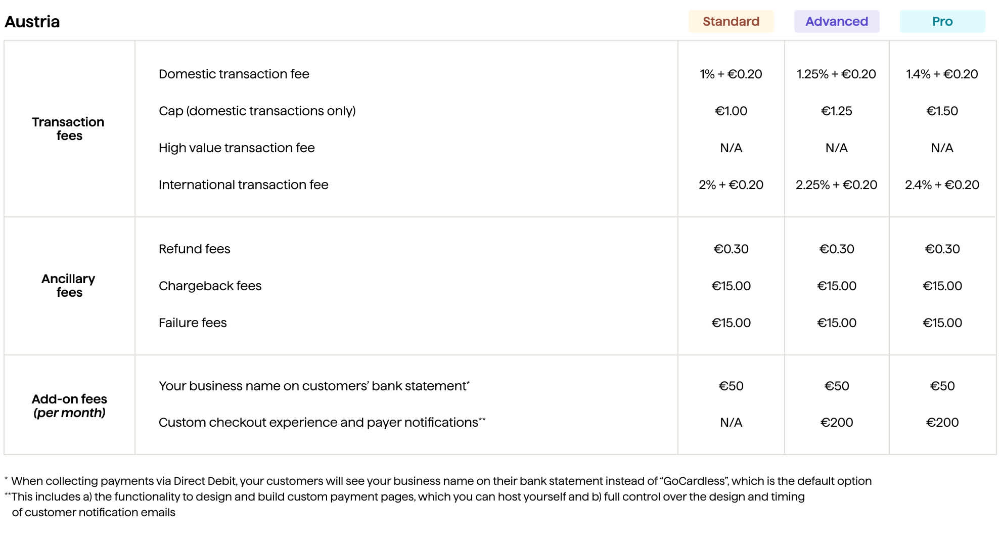 Chargebacks - applicable to all the types in US, Germany and Austria. Chargeback fees may apply in other regions.*