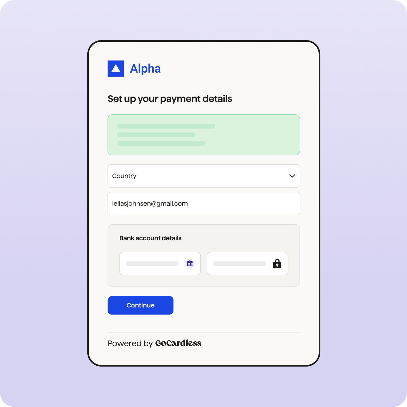 With GoCardless, businesses collect payments directly from customer’s bank accounts. Whether domestic or international, one-off or recurring, scheduled or instant. We do it all – quick, easy, and secure.