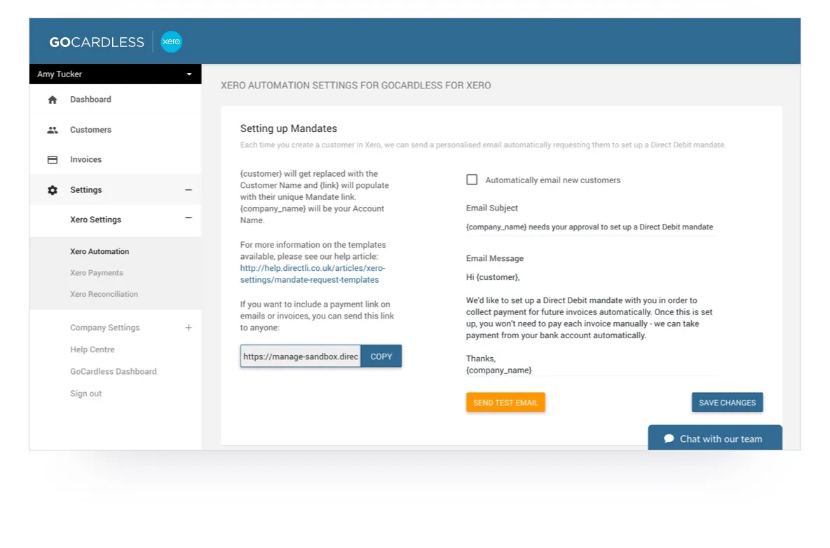 Your Xero customer data will be automatically synced so you can send out Direct Debit mandate requests via email. If you prefer, you can manually select customer records to send mandate requests to. Our online mandates take seconds for your customers to complete. You can even add a link to your website or engagement letter.