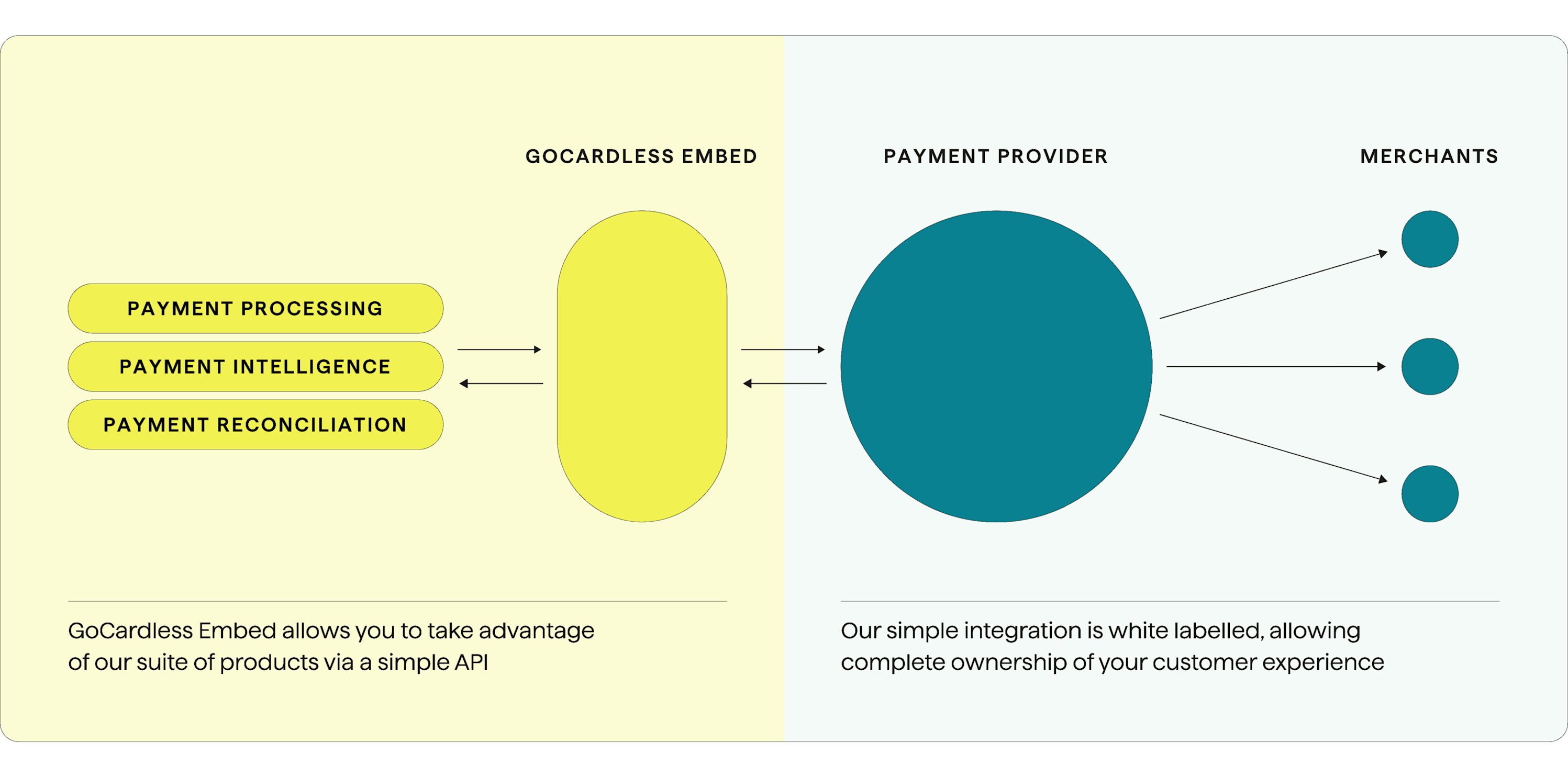 GoCardless Embed works behind the scenes of your platform so you’re able to offer the combination of highly trusted bank debit with the latest in open banking innovation, all whilst continuing to manage your customer relationships directly.