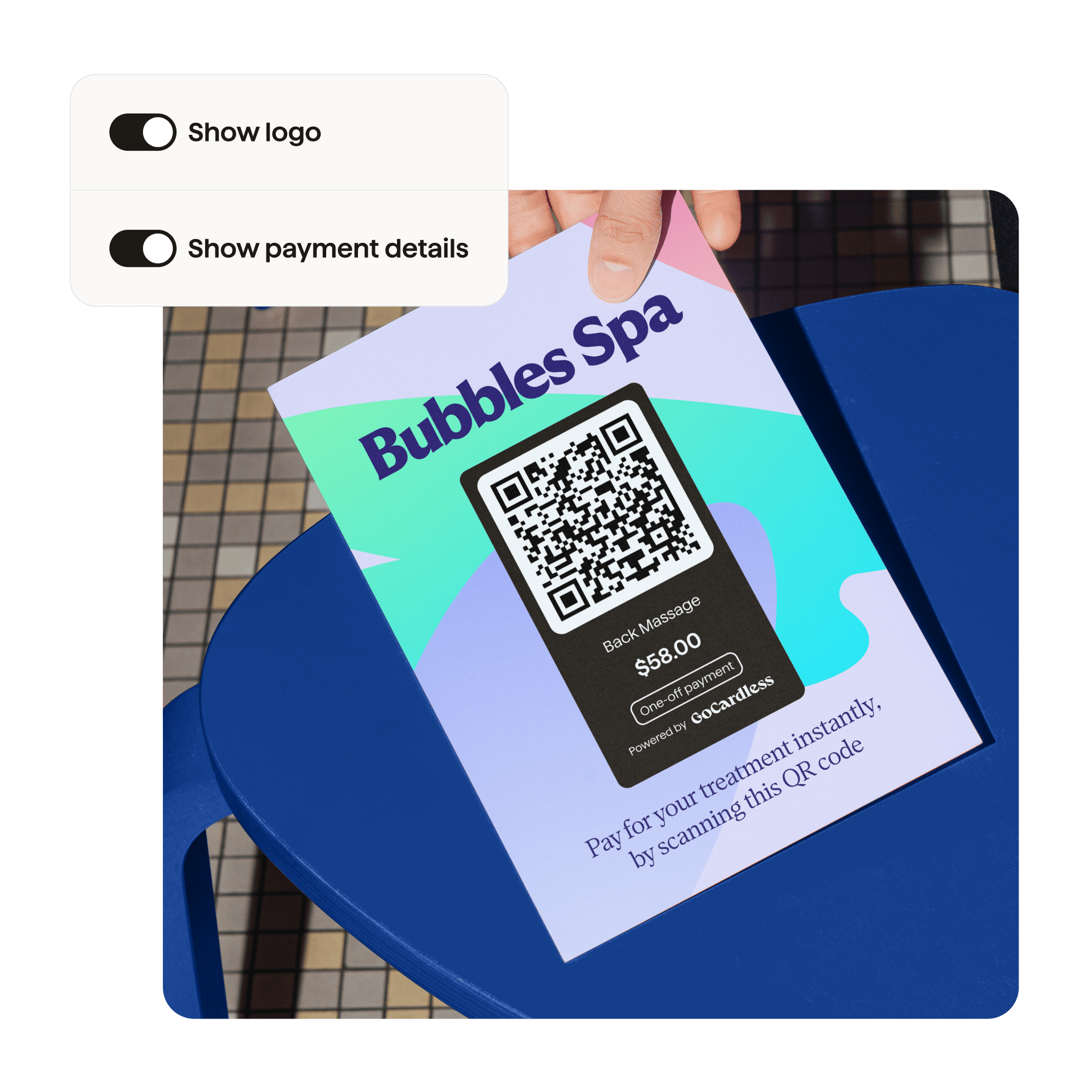 Collect payments in person or sign up a new customer on the go, with QR codes now available in your dashboard.