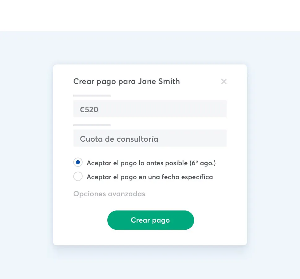 Crea pagos individuales desde GoCardless. Podrás cobrar al mismo cliente una cantidad distinta cada vez. GoCardless te permite cobrar el dinero de tus facturas de forma sencilla.