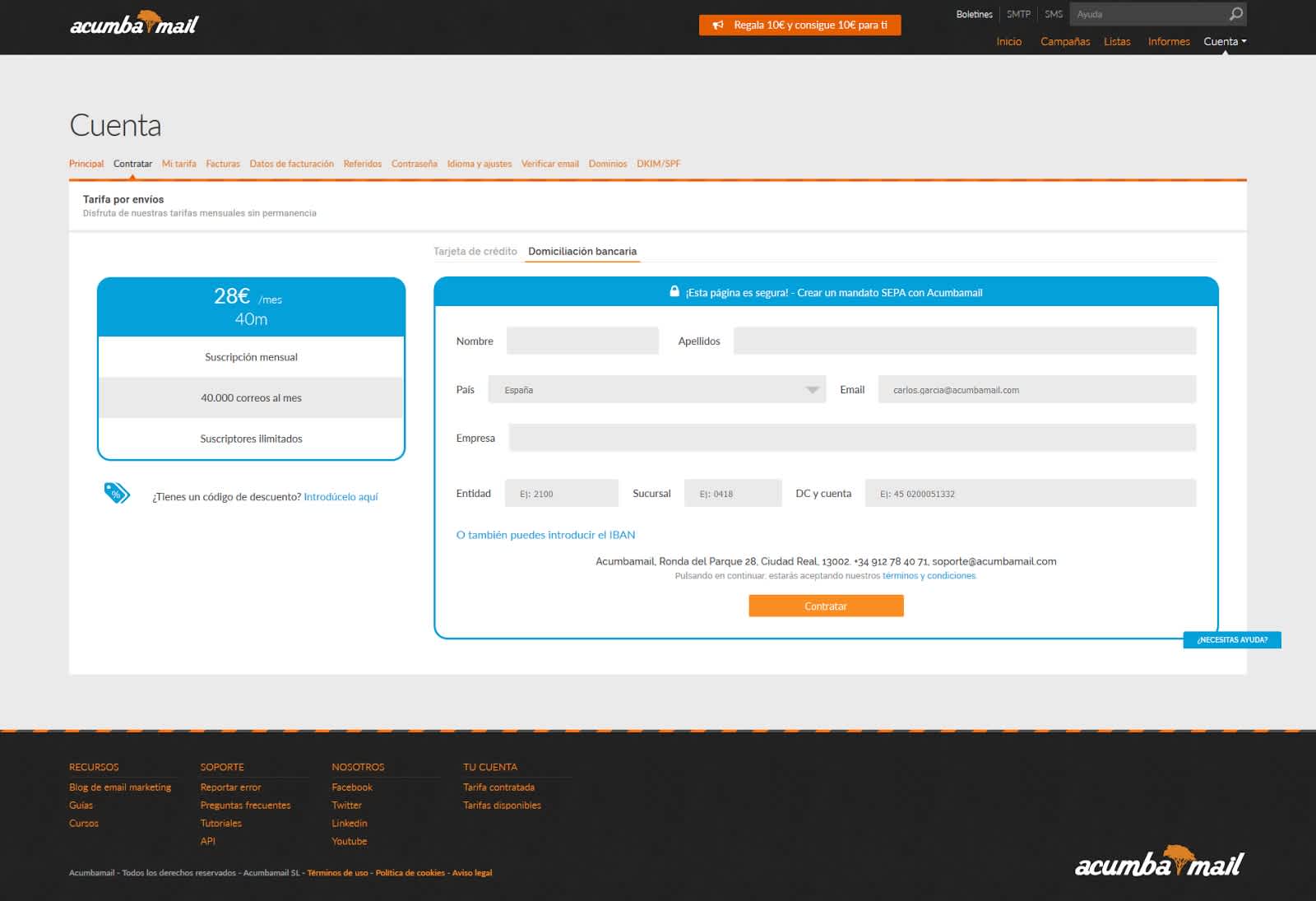 Siete meses atrás, tan solo 80 clientes de Acumbamail se decantaban por la opción de la domiciliación bancaria. Actualmente, ese número ronda los 280. Hasta no hace mucho, tan solo el 10% de los nuevos usuarios que contrataban este servicio de email marketing se decidían por este método de pago. Ahora los recién llegados que apuestan por esta opción representan el 40%.