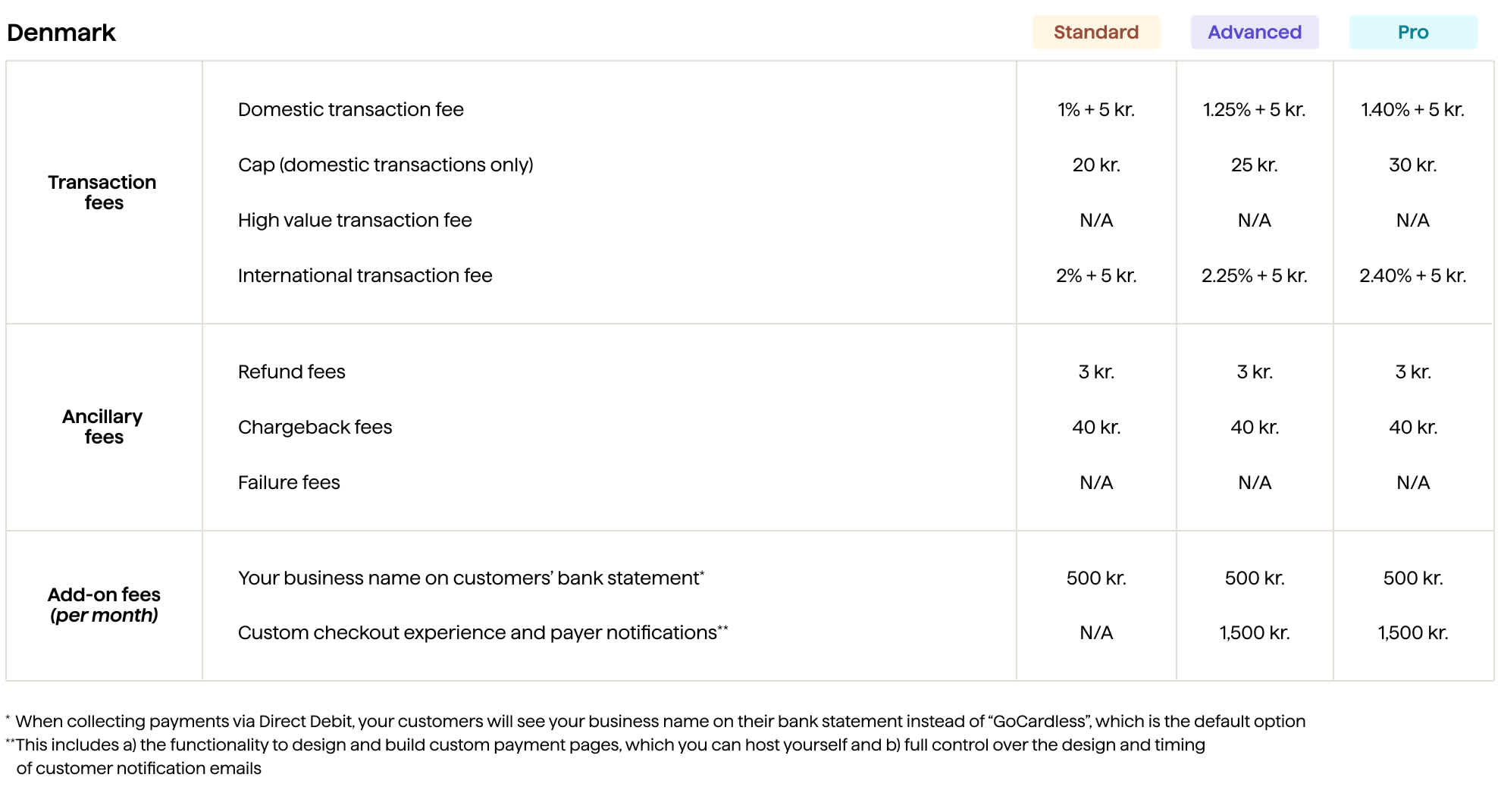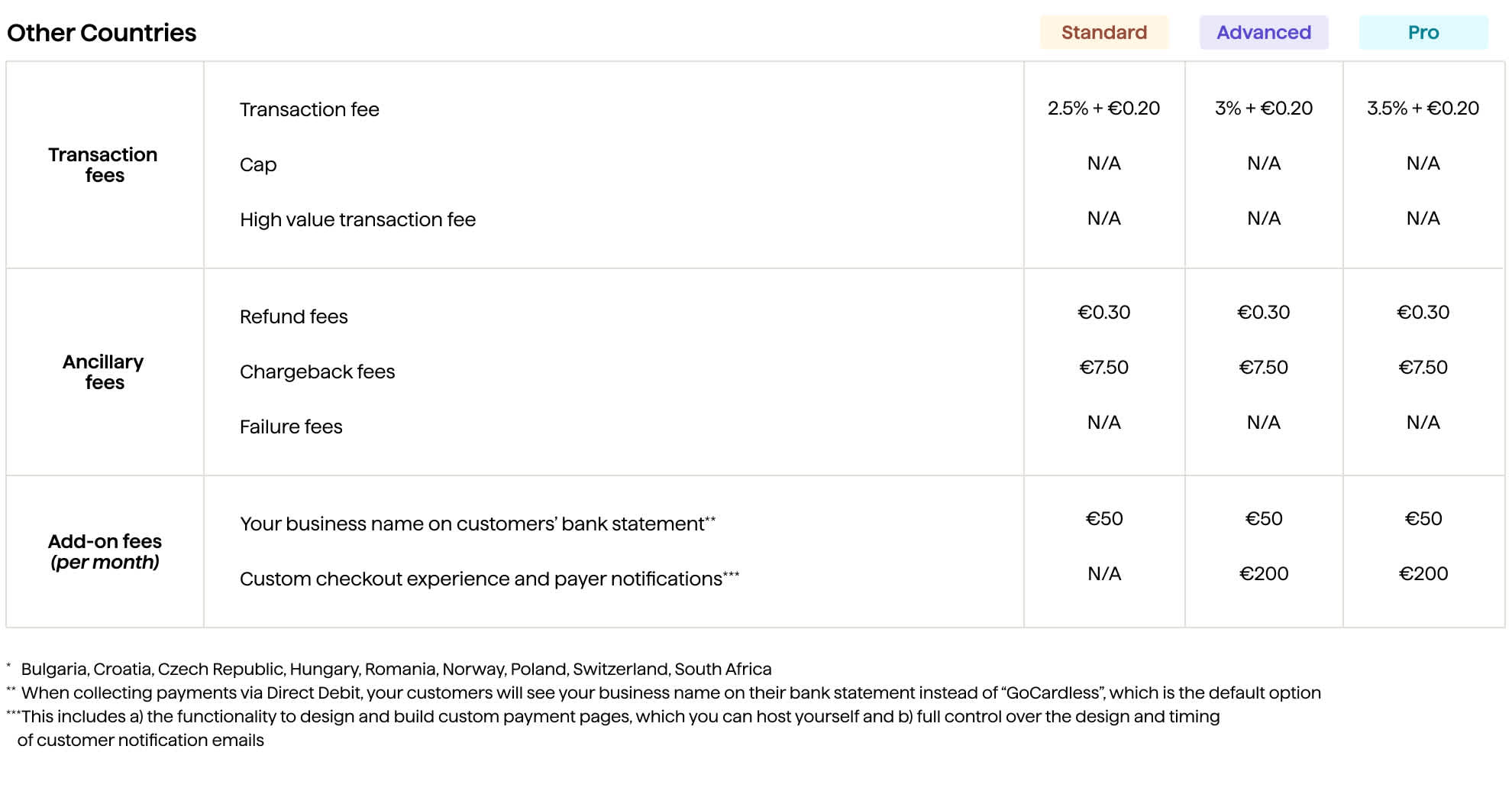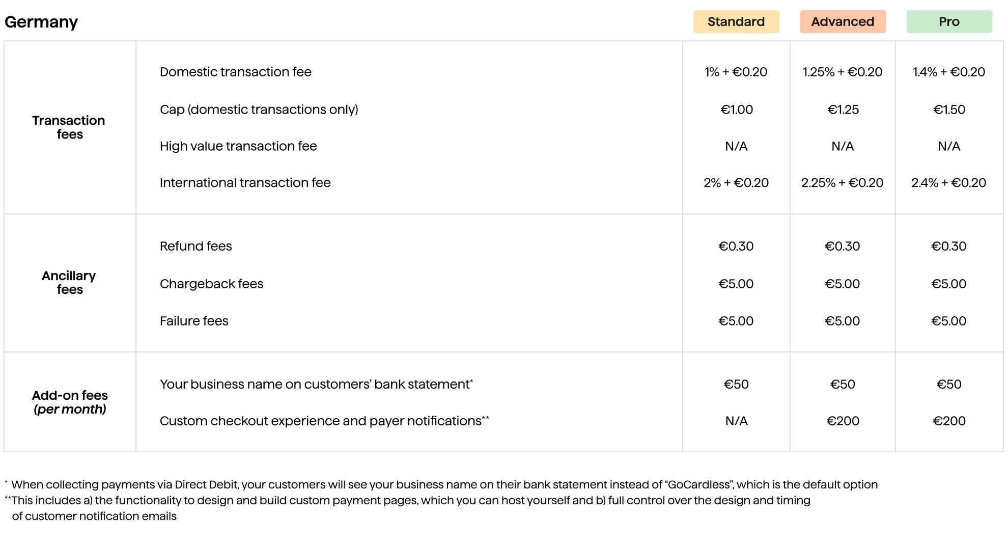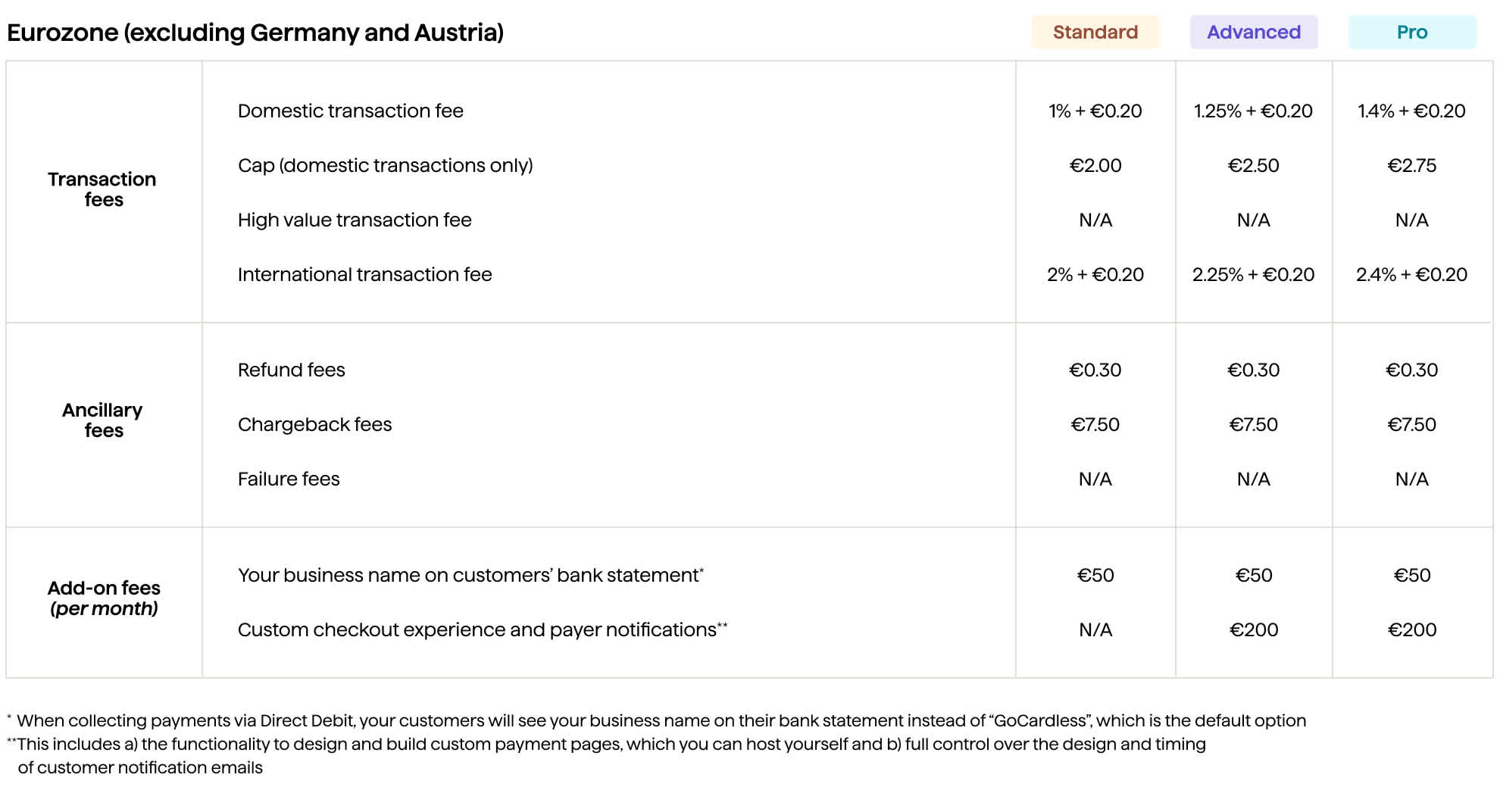 Chargebacks - applicable to all the types in US, Germany and Austria. Chargeback fees may apply in other regions.*