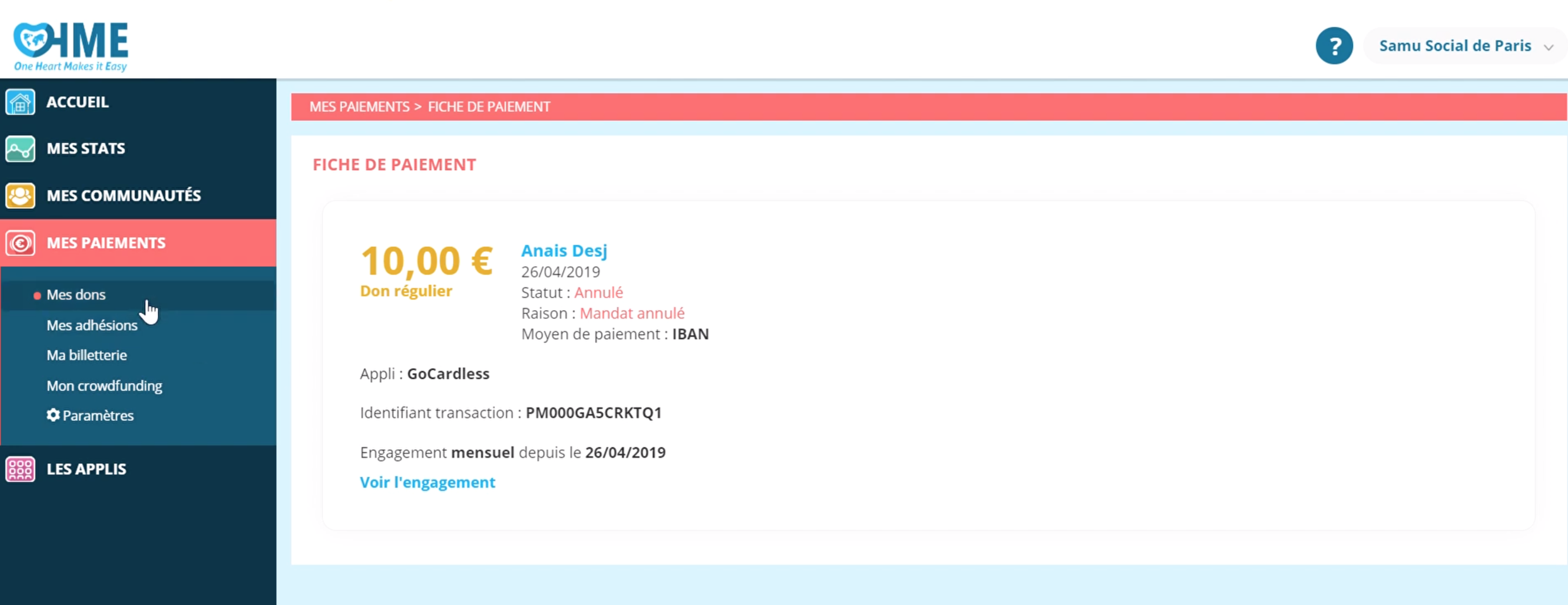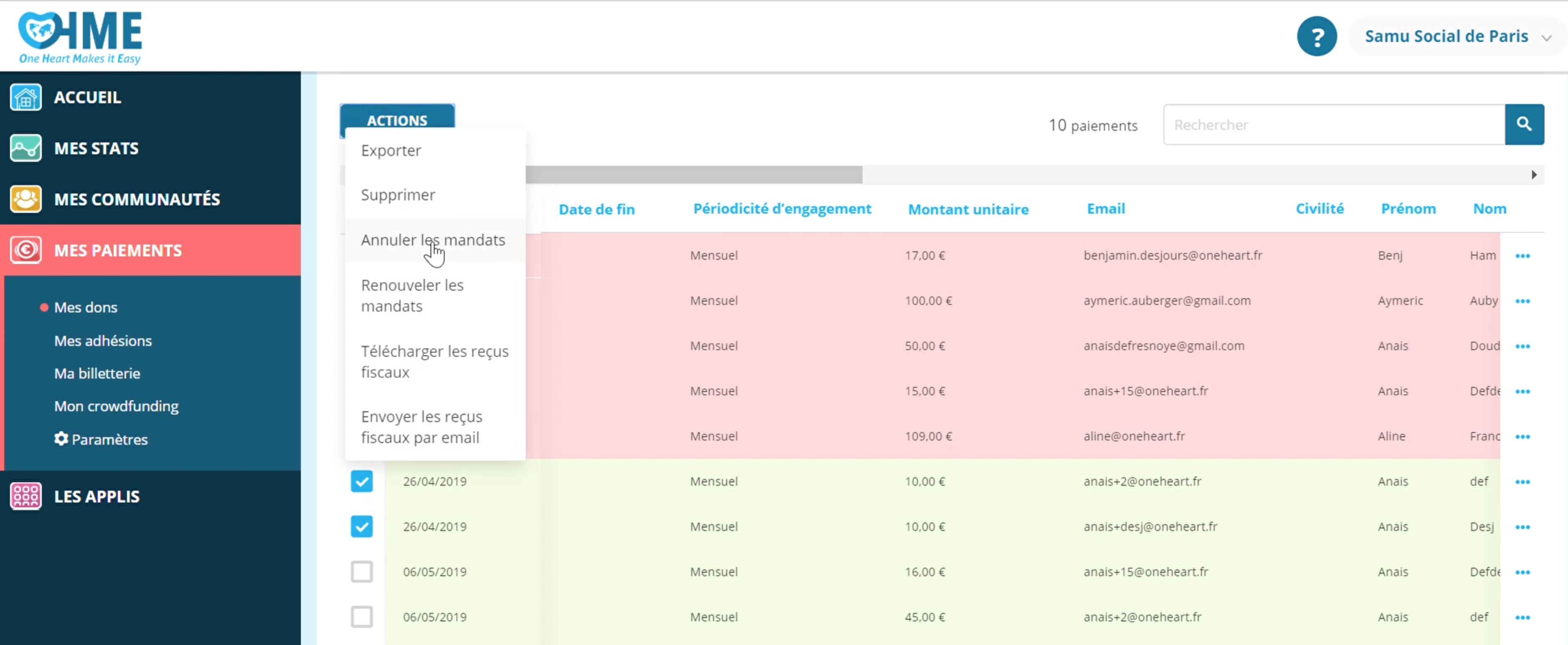Vous pouvez ainsi piloter vos mandats et prélèvements au quotidien : annulation, réactivation, modification du montant de l’engagement…