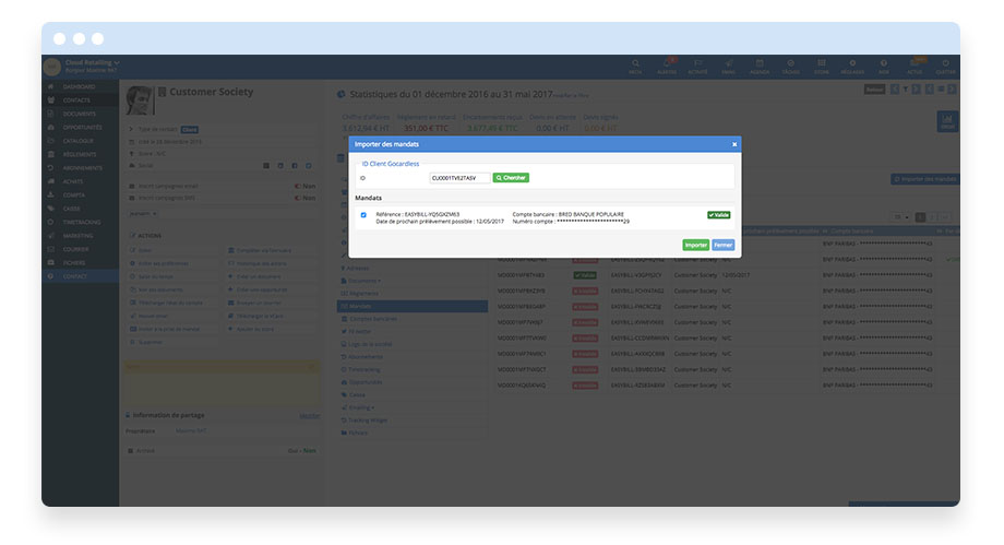 Si vous êtes déjà client GoCardless, vous avez la possibilité d’importer un mandat unique ou l’ensemble des mandats présents dans votre compte GoCardless directement sur votre compte Sellsy (plus d'explication ici).