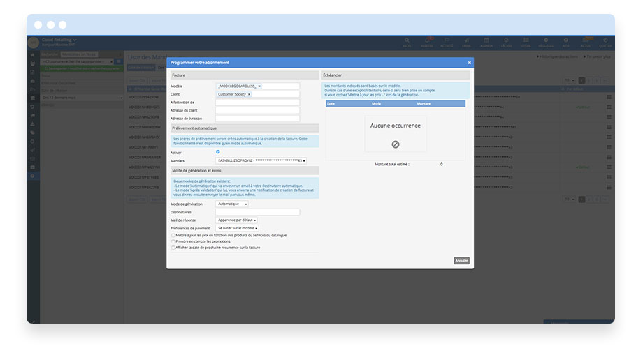 Avec le module abonnement Sellsy, vous avez la possibilité de générer automatiquement les prélèvements à échéance.
