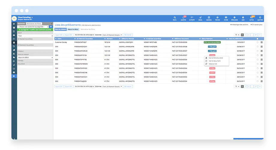 L'état des différents paiements peut être consulté en temps réel. Les paiements en échec sont facilement identifiables et peuvent donc être représentés.