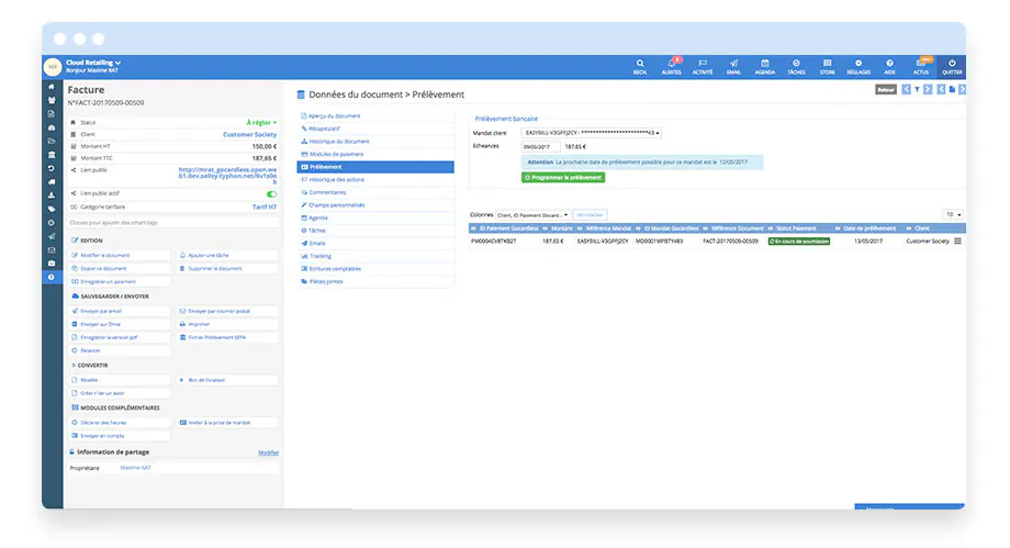 Les factures impayées peuvent être réglées automatiquement contre le mandat de prélèvement du client.