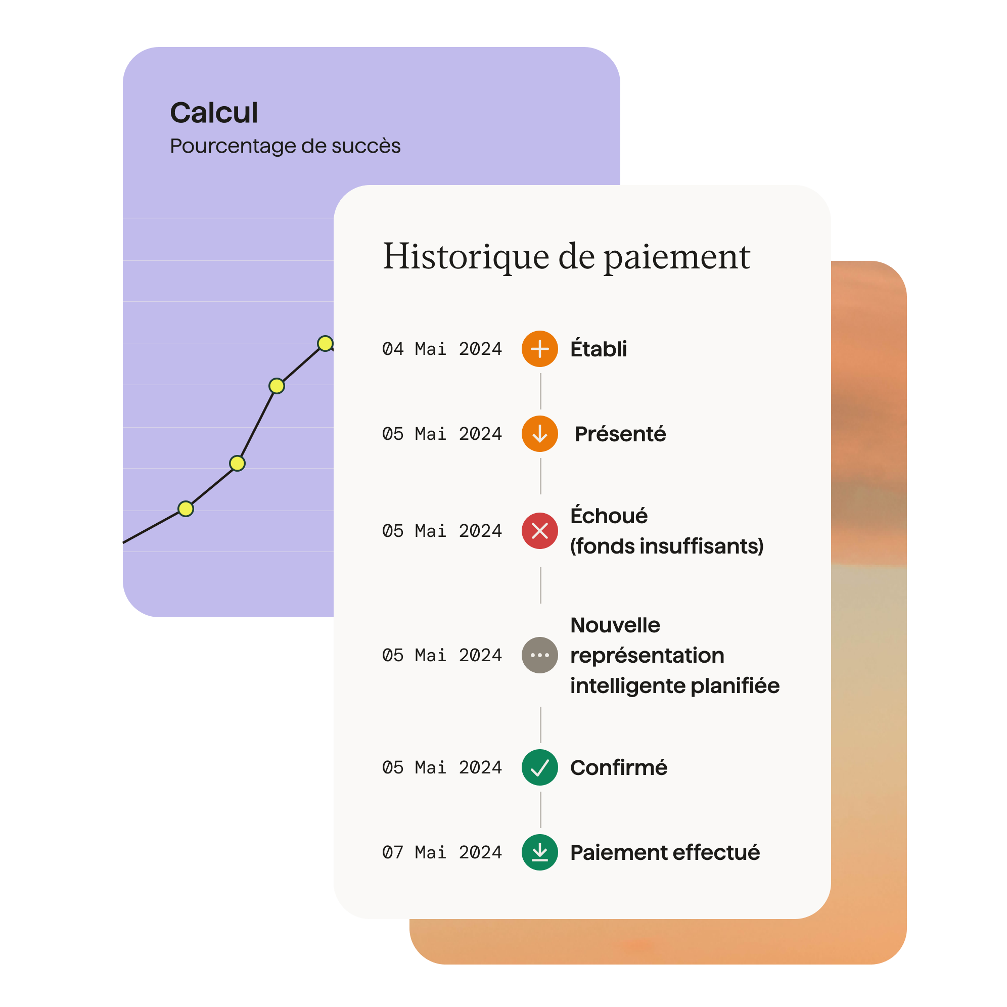 Recevez des alertes et des notifications en temps réel pour suivre vos paiements. Disposez aussi des informations pertinentes pour pouvoir réagir dès qu’un paiement échoue ou qu’un mandat est résilié.