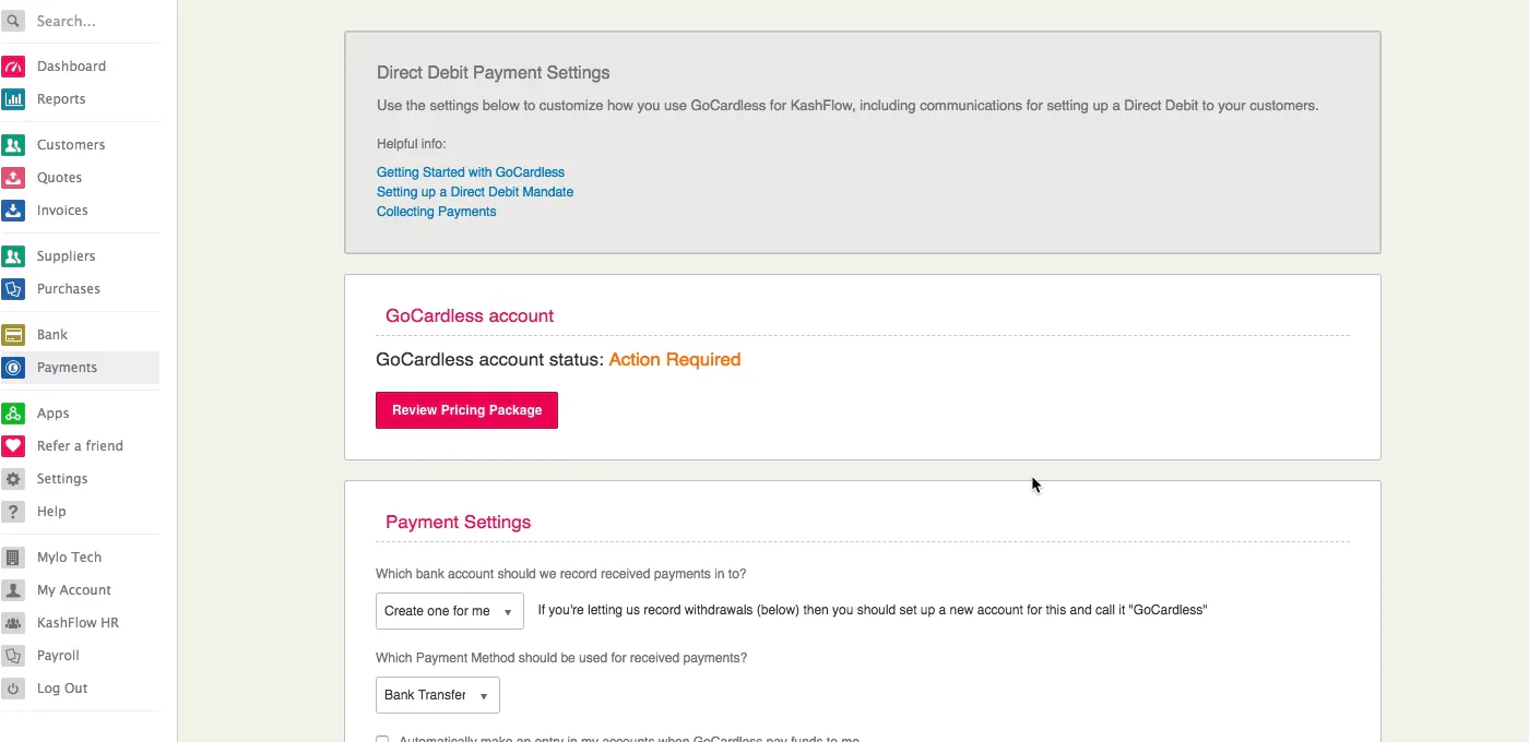 Start using GoCardless for KashFlowHelp & resources