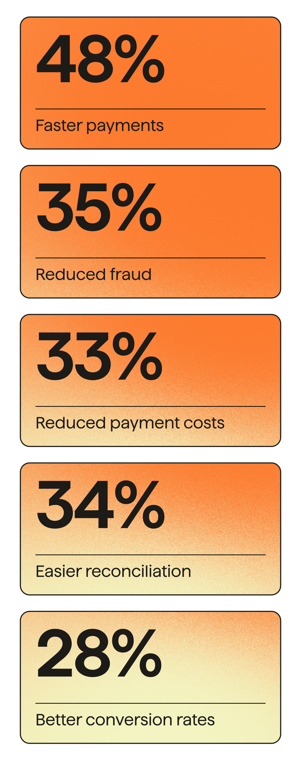Reduce your failed payments. Successfully collect 99% of instant, one-off payments – and 97.3% of automated, recurring payments – on the first try.