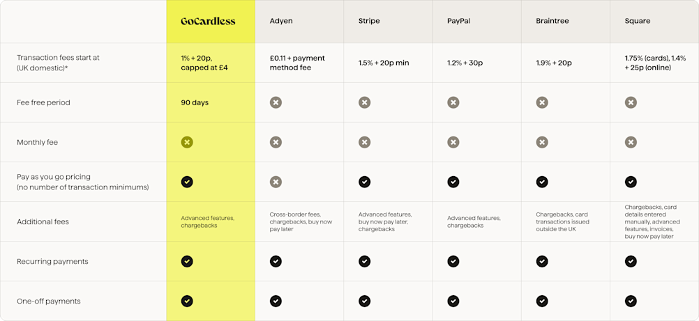 Collect instant, one-off payments. Or automated recurring payments with Direct Debit. Without the chasing, stress or expensive fees.