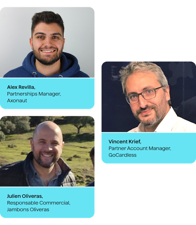 Julien Oliveras, responsable commercial de Jambons Oliveras, vous livrera son témoignage sur les défis de paiement rencontrés et les solutions choisies pour les relever. Vous découvrirez également les principales tendances sur ces questions grâce à l’éclairage d’experts GoCardless et Axonaut.